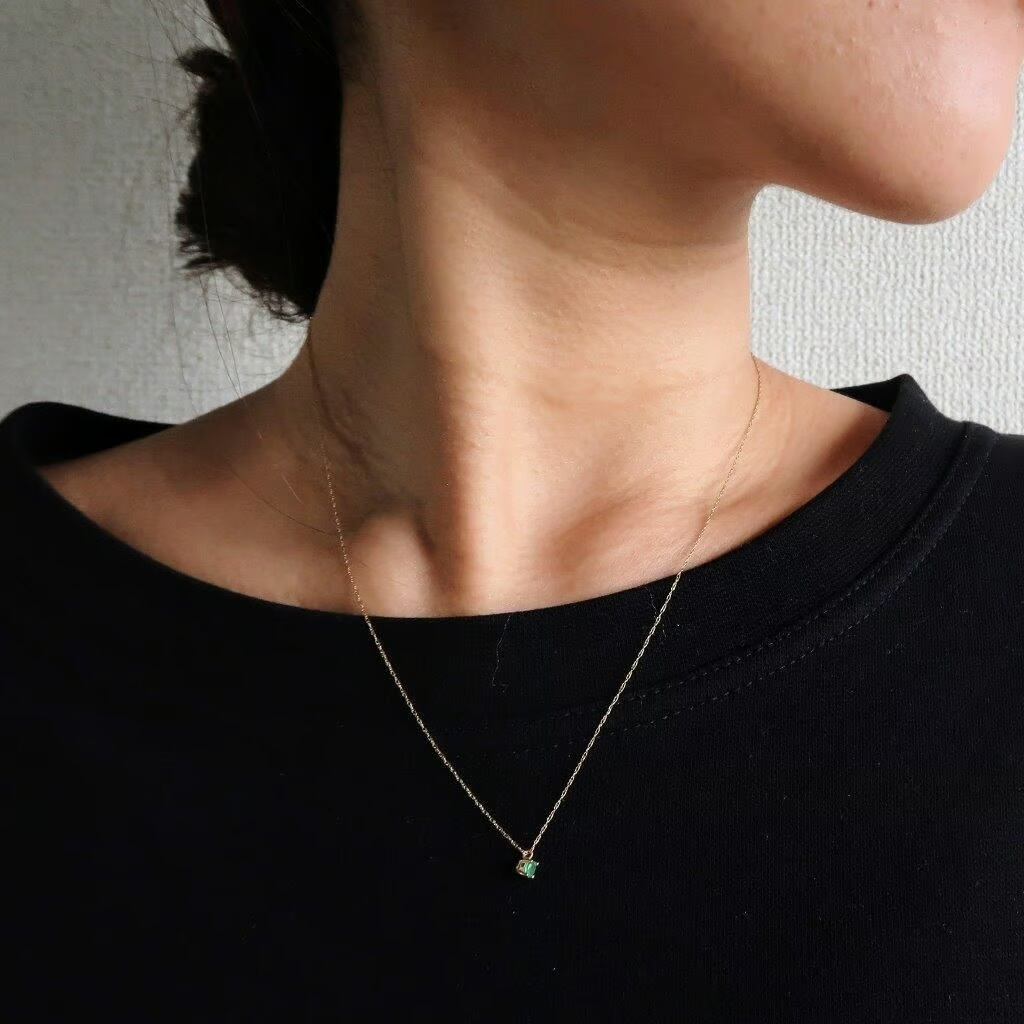 素材はK10ゴールド、エメラルド、長さは45cm(40+5cm)です。